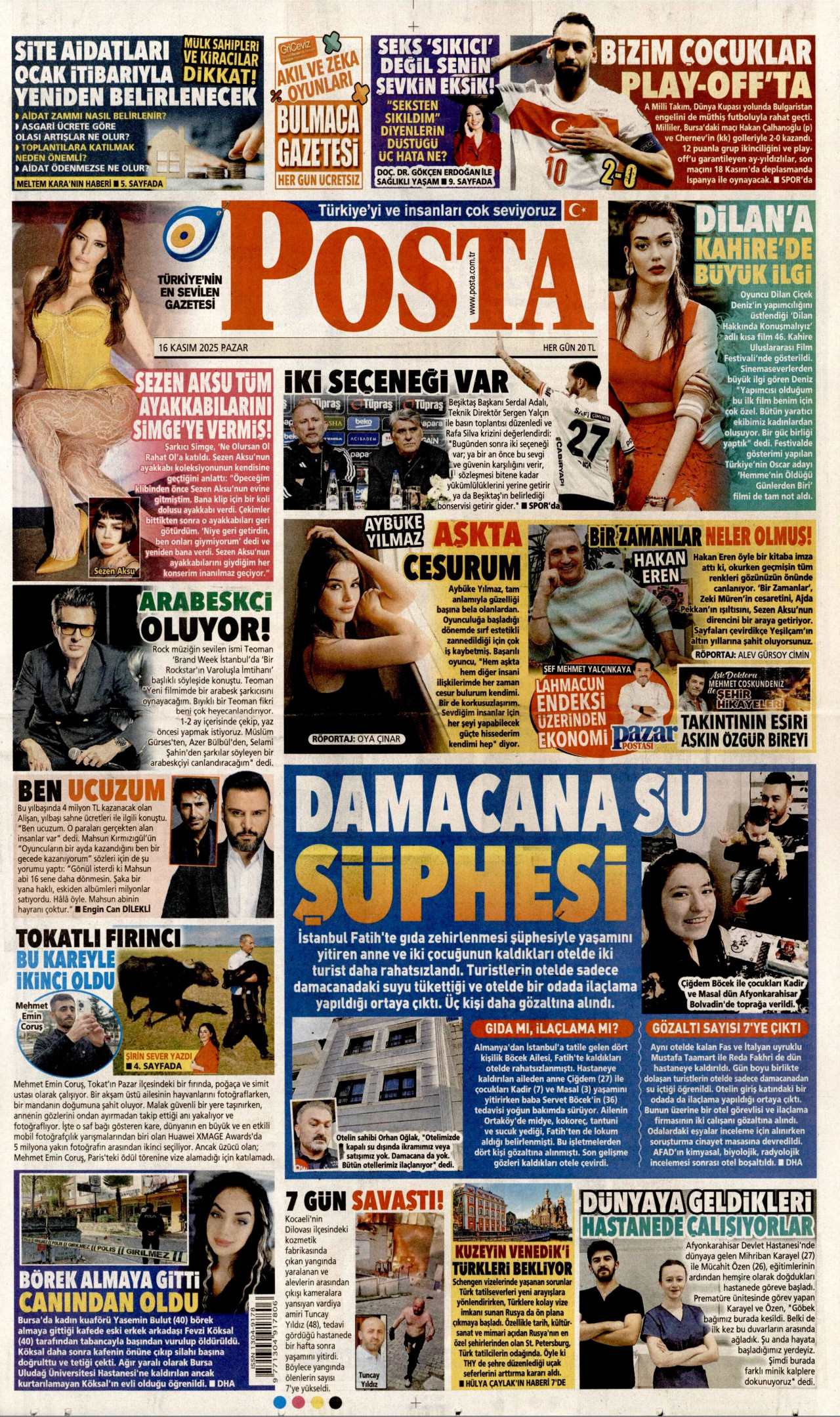 POSTA Gazetesi 15 Kasım 2025, Cumartesi Günü Manşeti