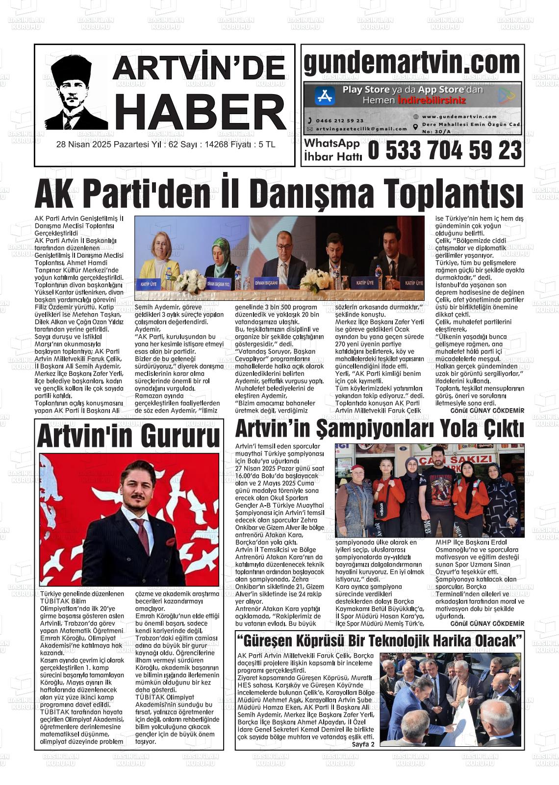 Artvİn Yerel Gazeteleri 15 Kasım 2025, Cumartesi Günü Manşeti