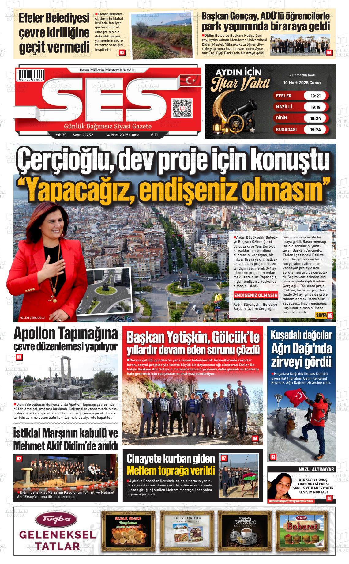 Aydın Yerel Gazeteleri 29 Kasım 2025, Cumartesi Günü Manşeti
