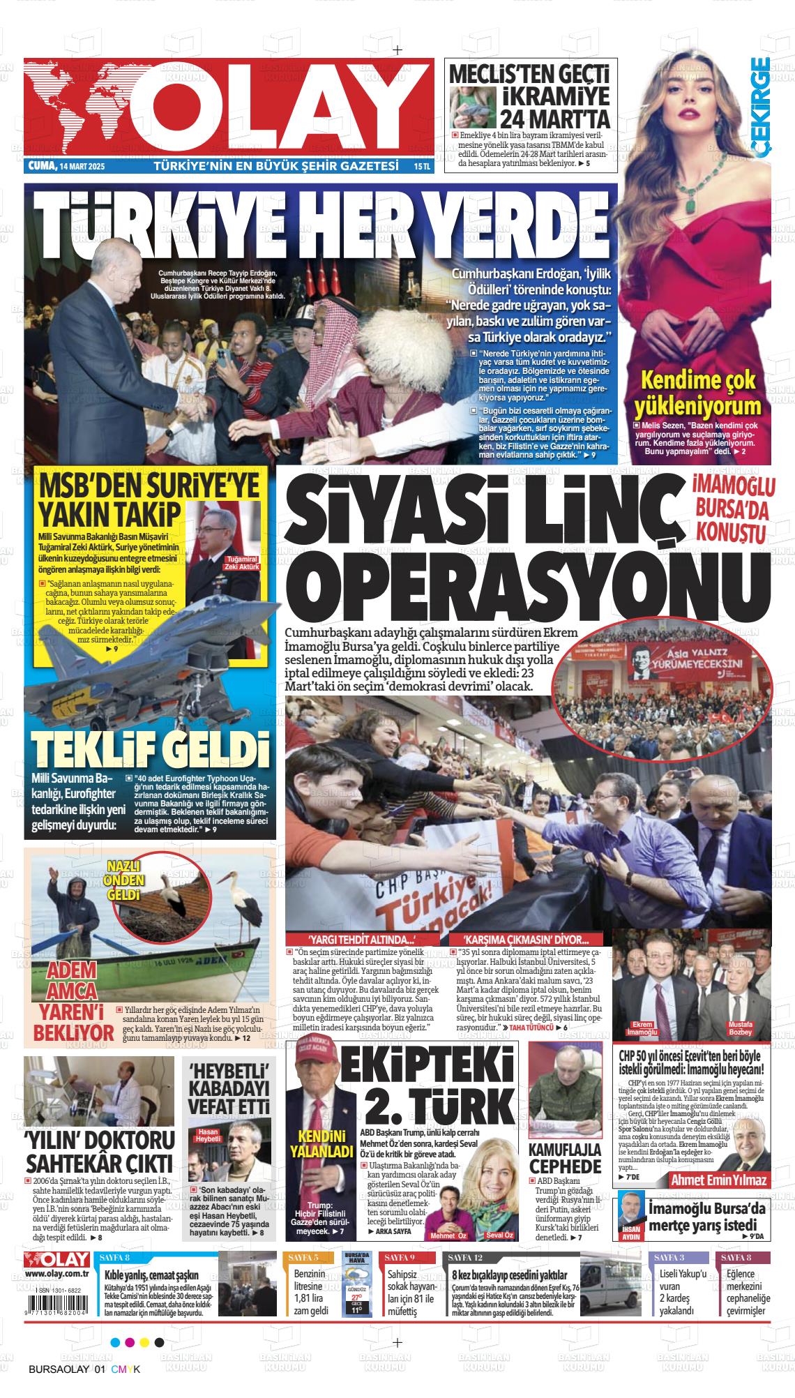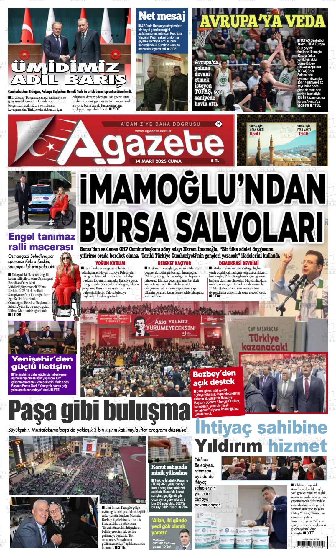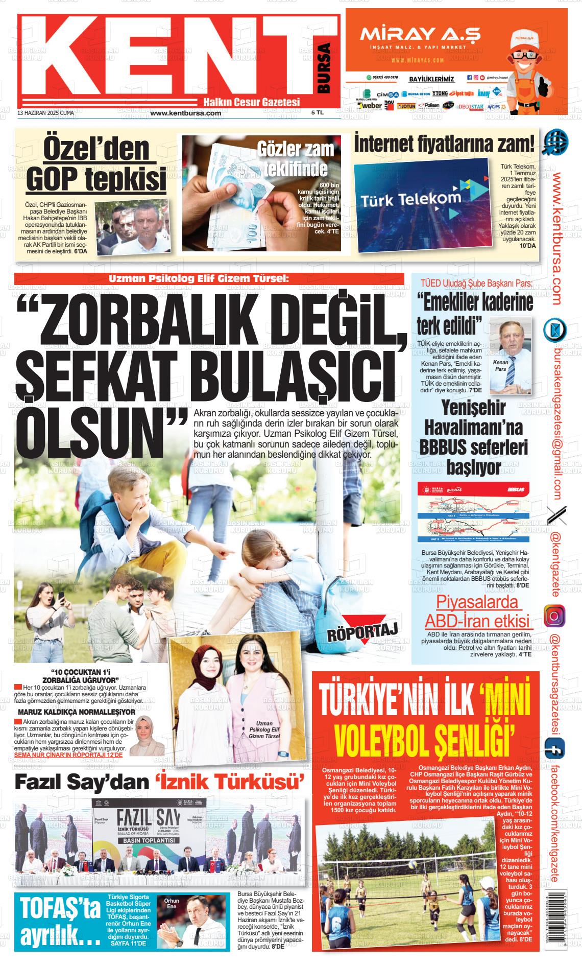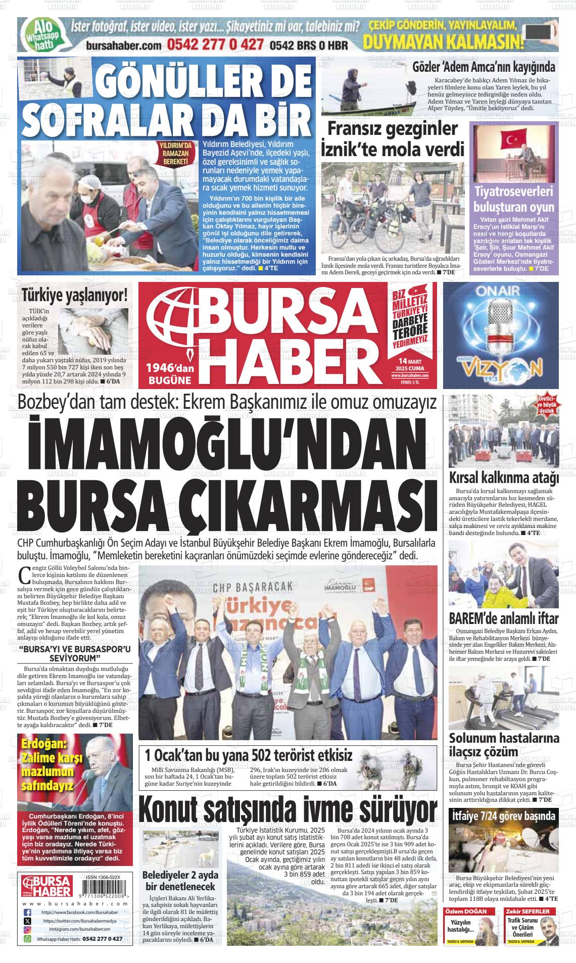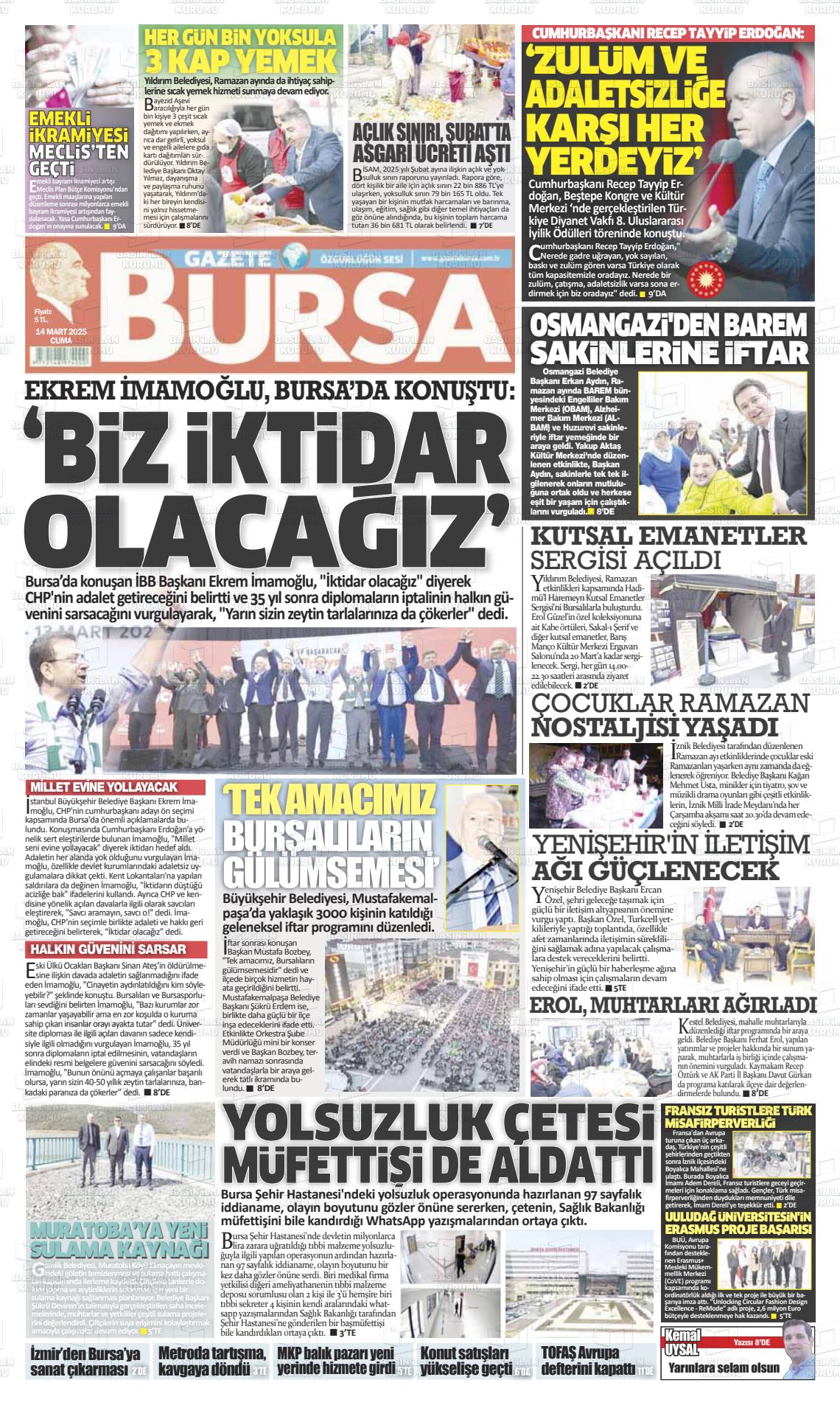 Bursa Yerel Gazeteleri 29 Kasım 2025, Cumartesi Günü Manşeti