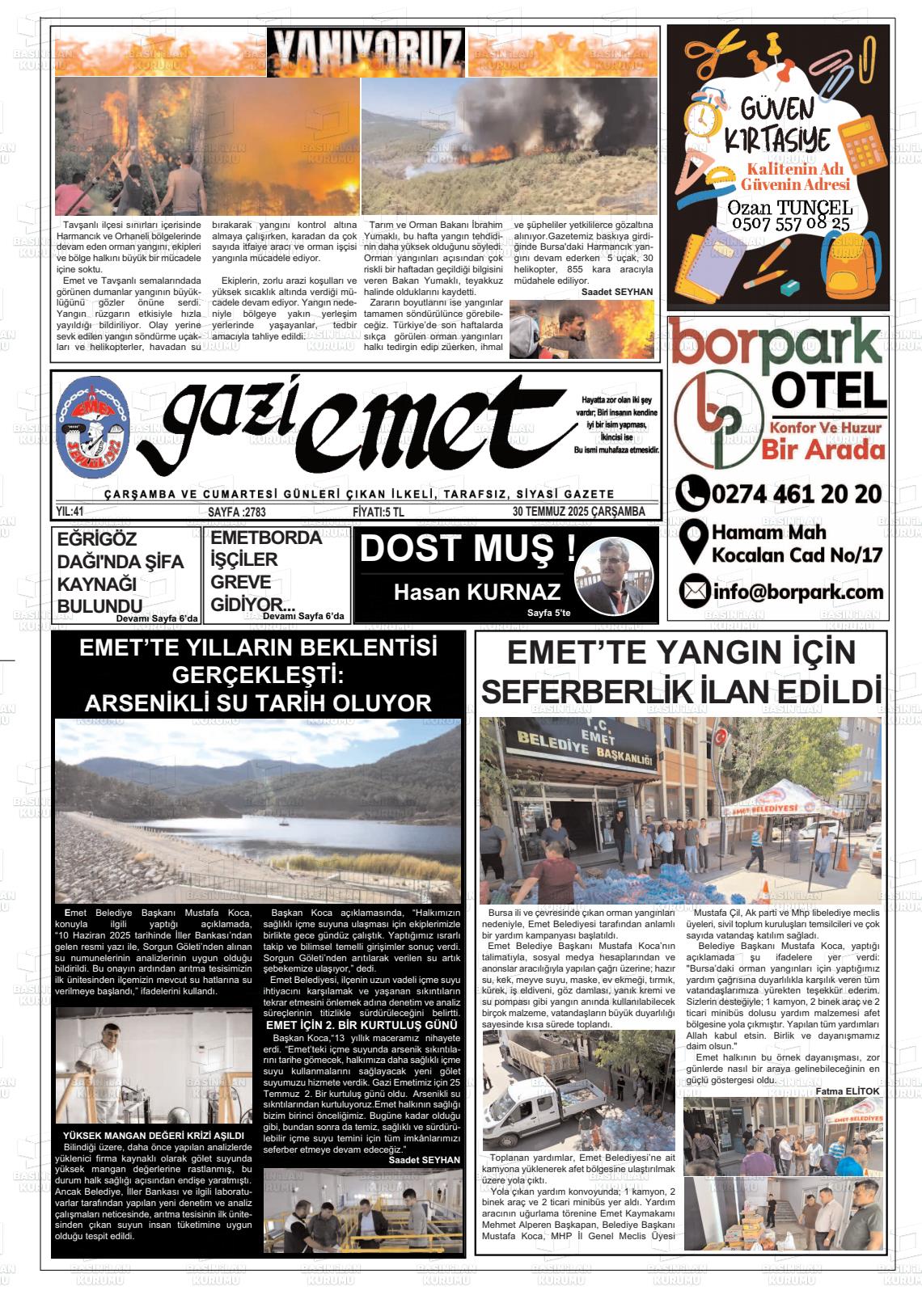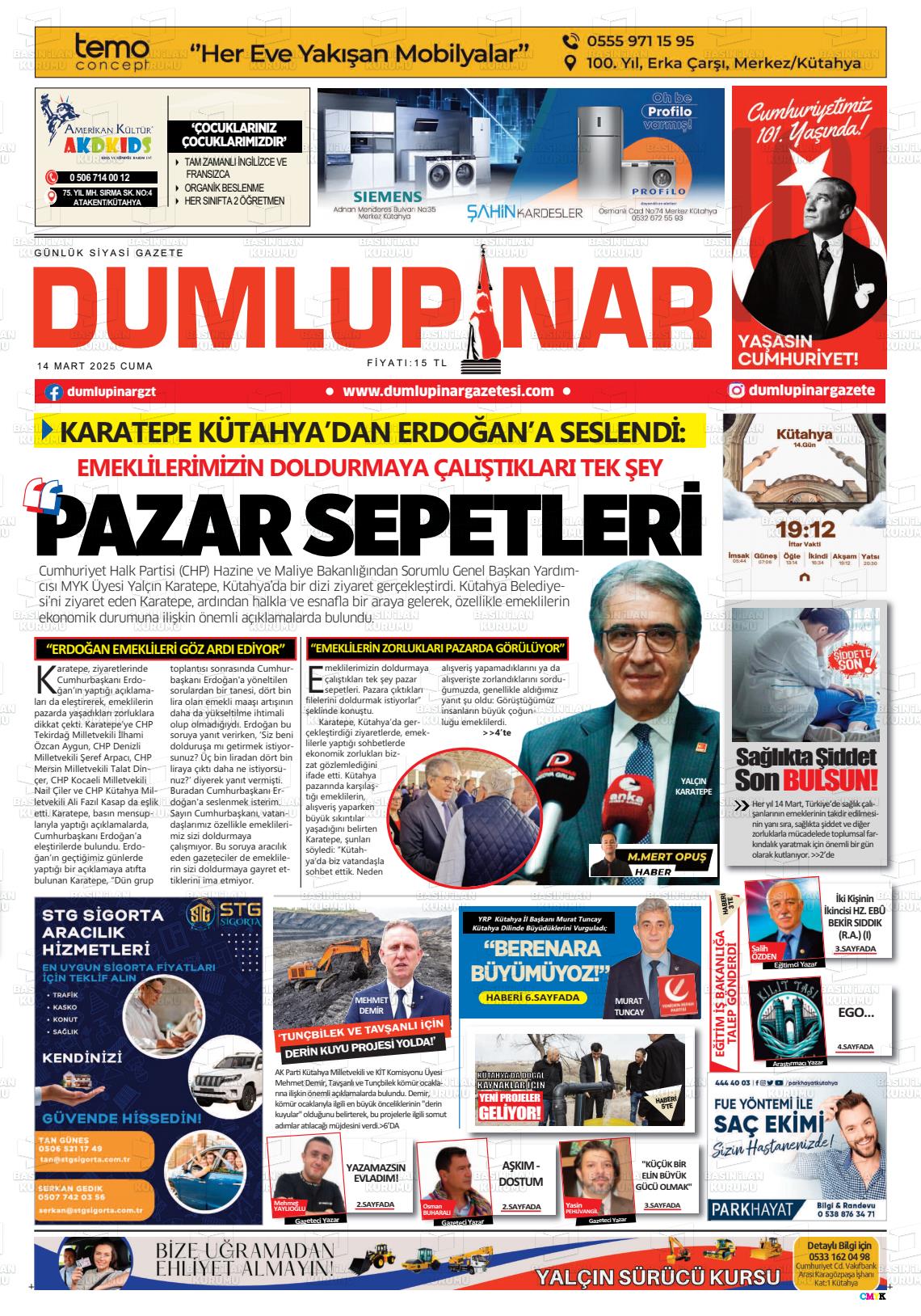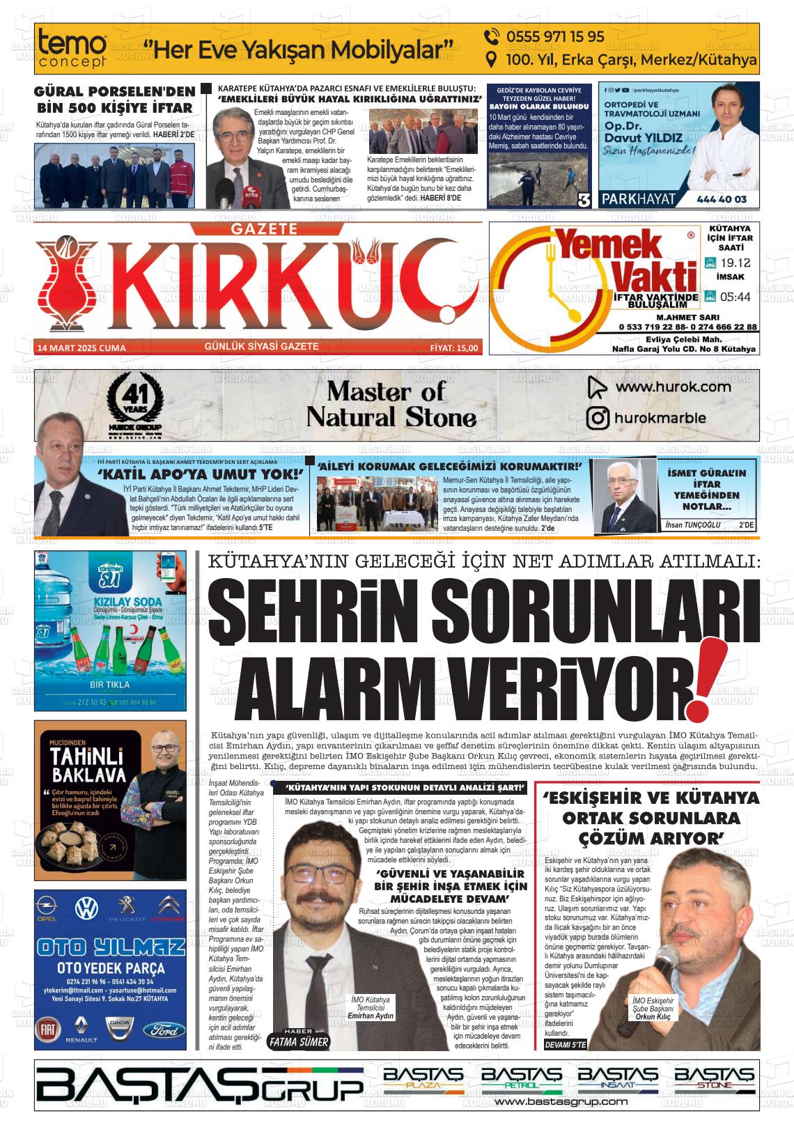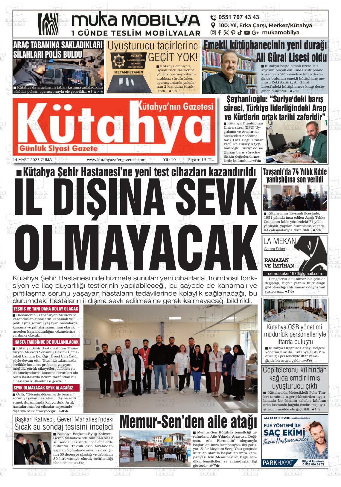 Kütahya Yerel Gazeteleri 29 Kasım 2025, Cumartesi Günü Manşeti