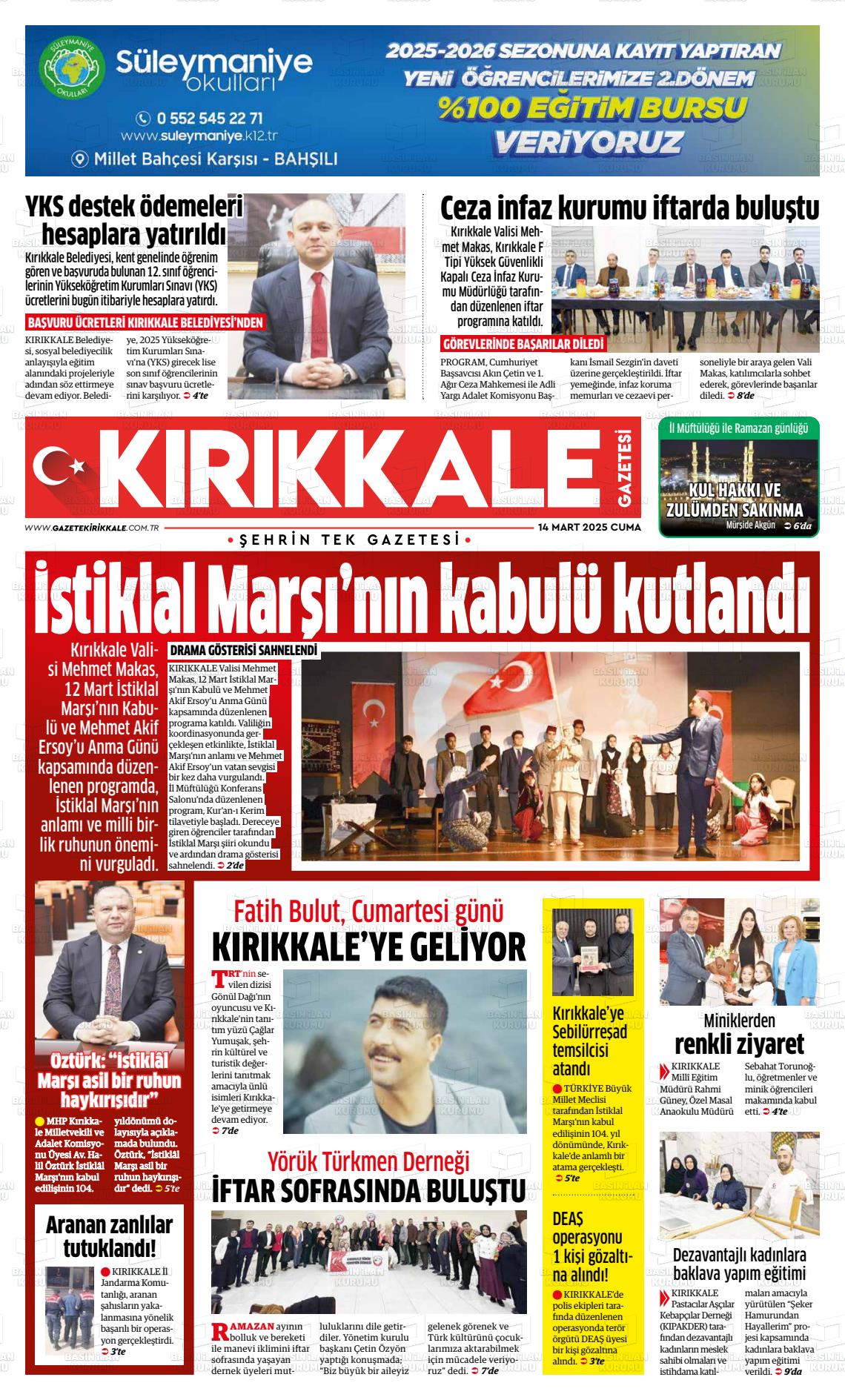 Kırıkkale Yerel Gazeteleri 29 Kasım 2025, Cumartesi Günü Manşeti