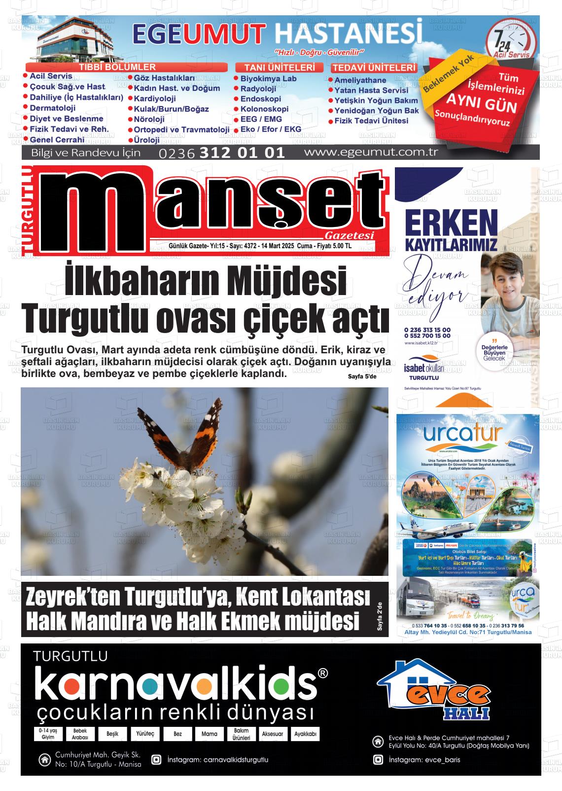Manİsa Yerel Gazeteleri 13 Ekim 2025, Pazartesi Günü Manşeti