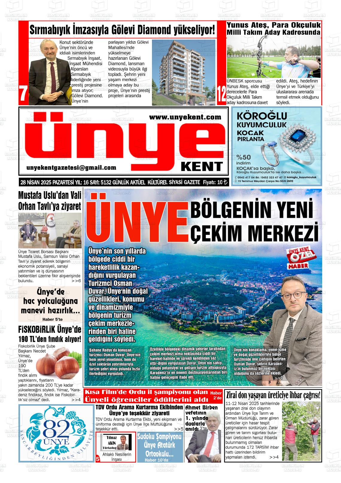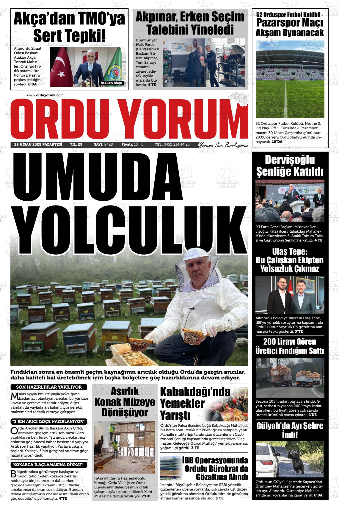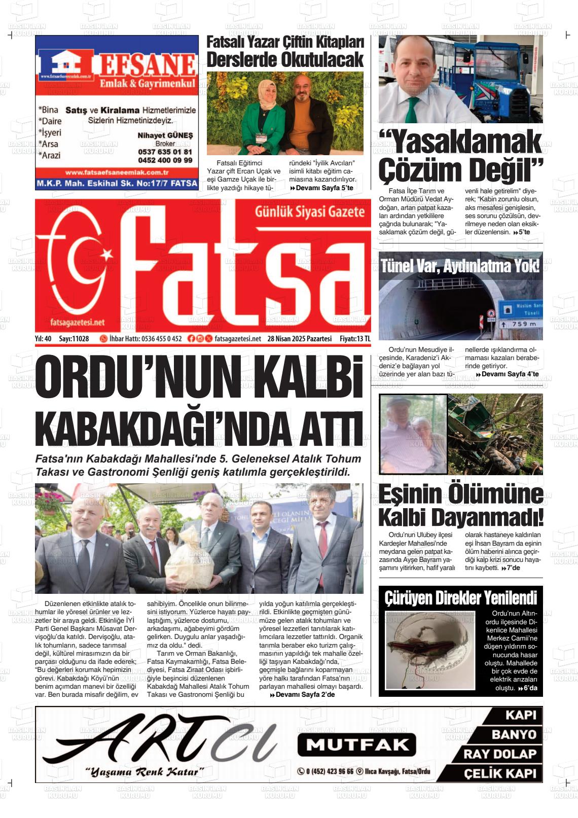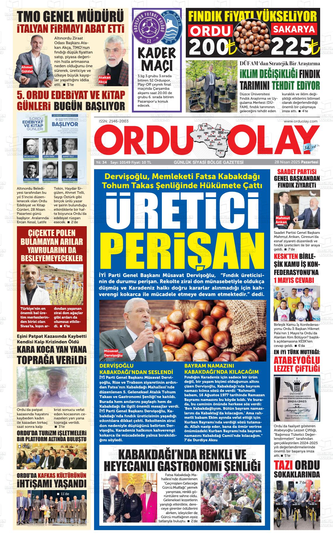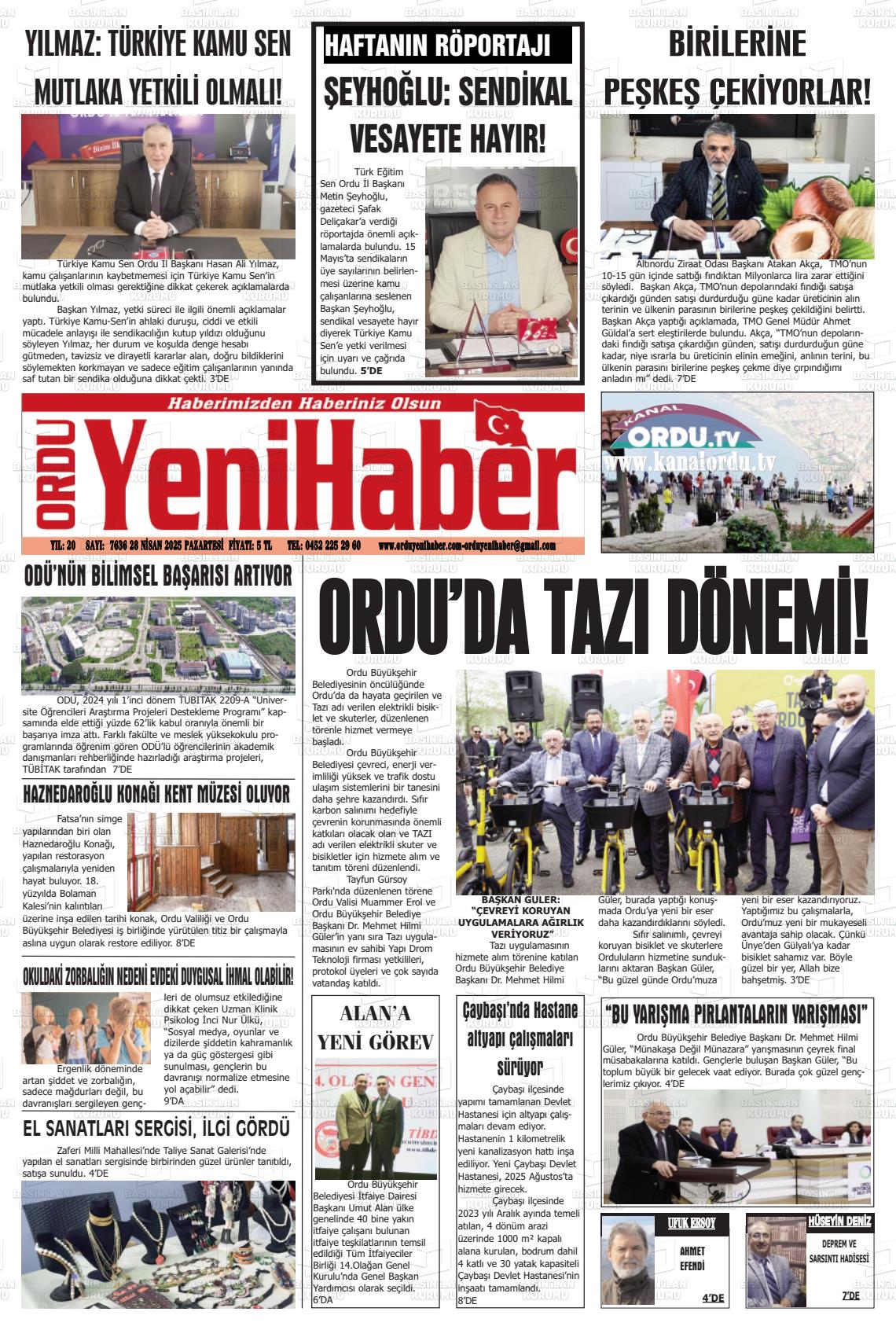 Ordu Yerel Gazeteleri 15 Kasım 2025, Cumartesi Günü Manşeti