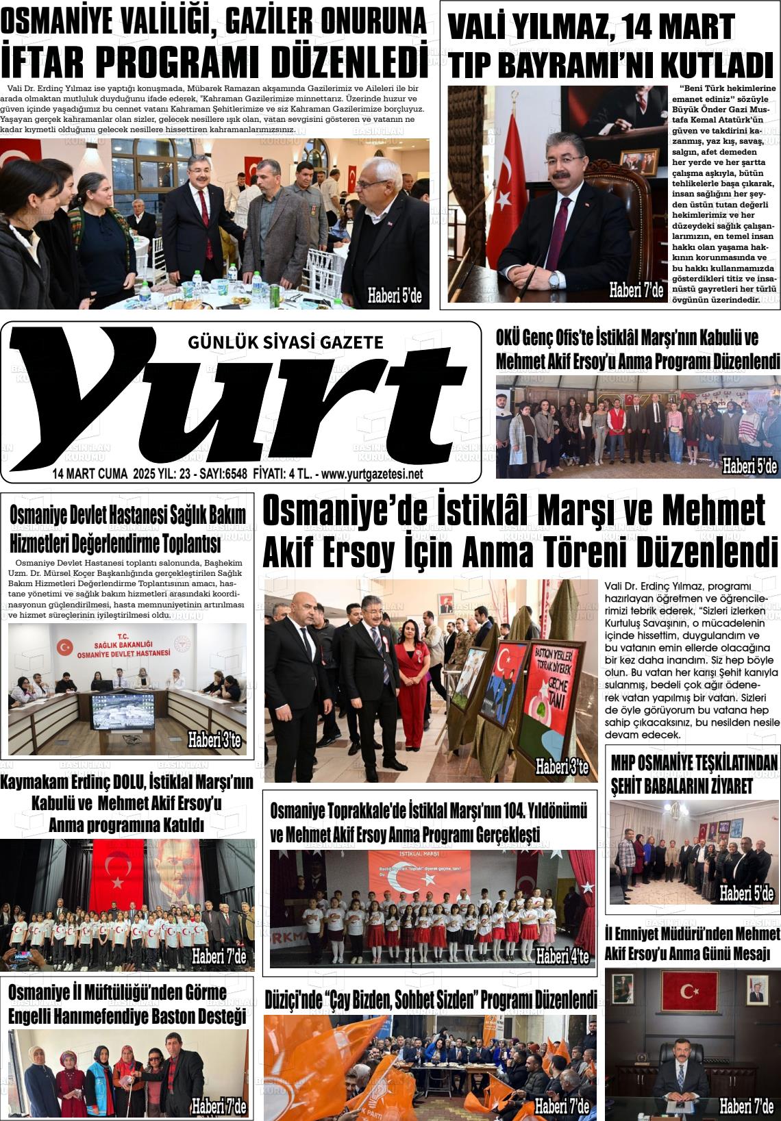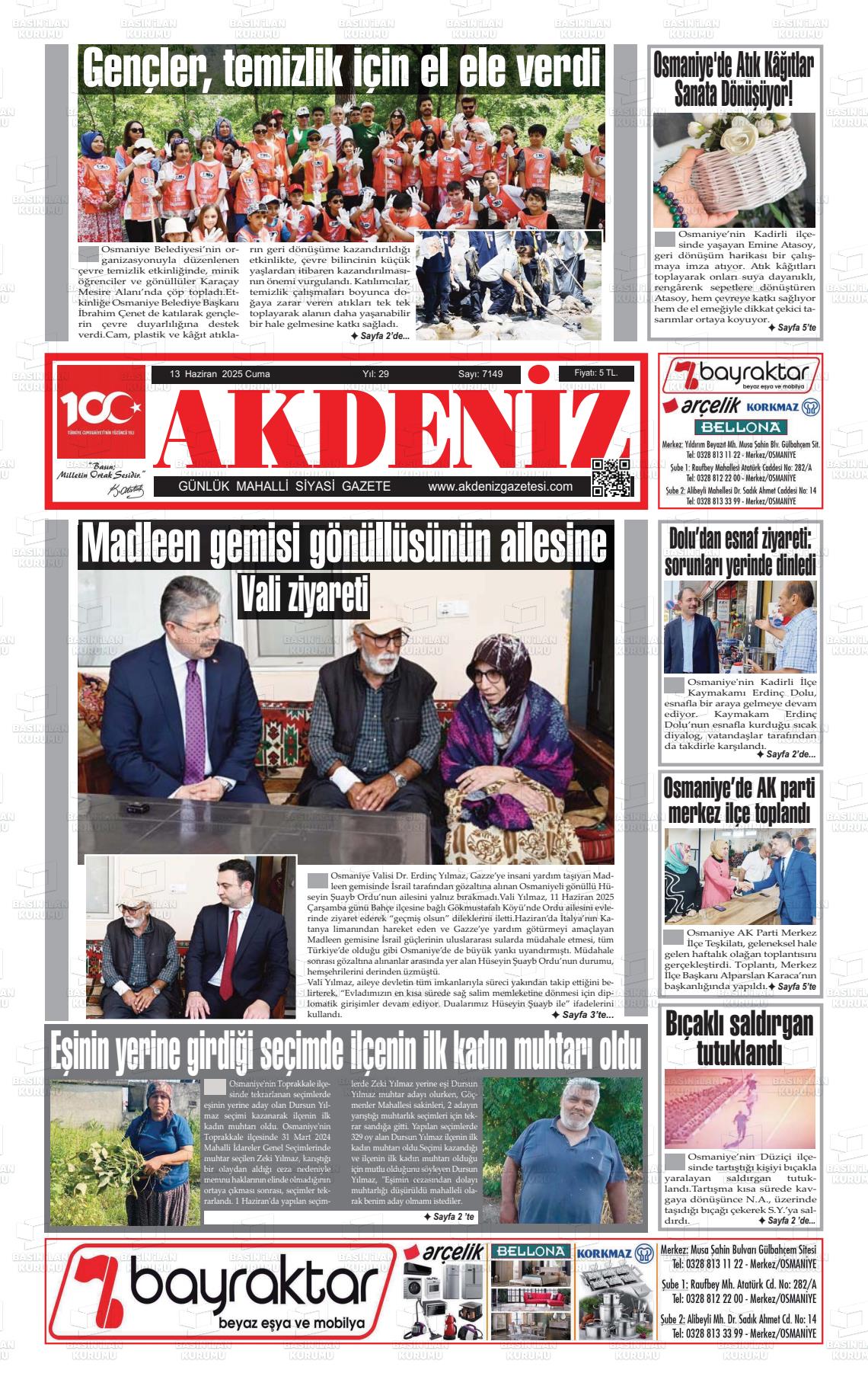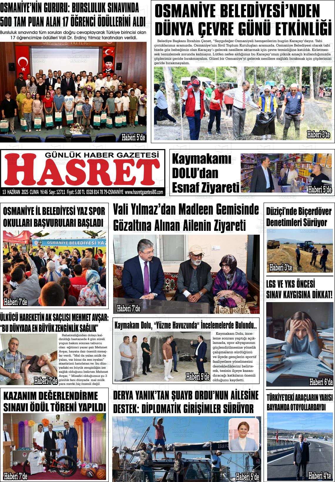 Osmanİye Yerel Gazeteleri 29 Kasım 2025, Cumartesi Günü Manşeti