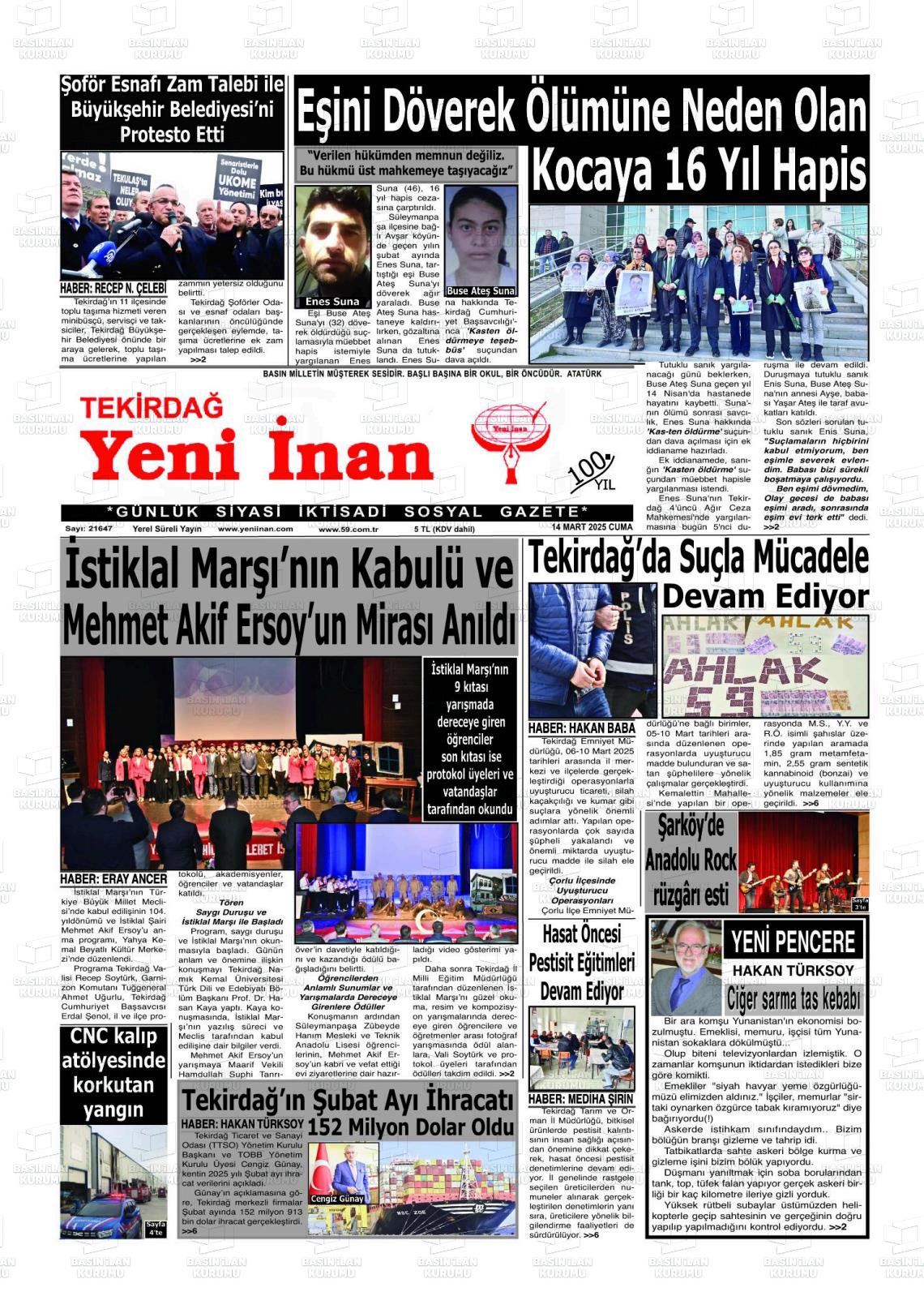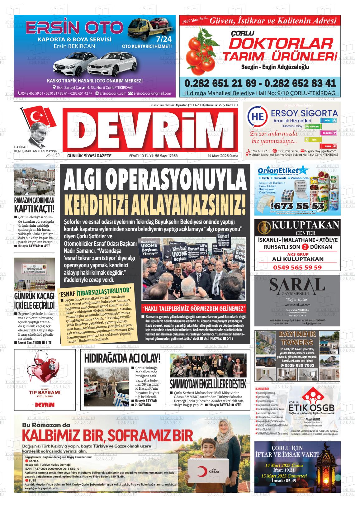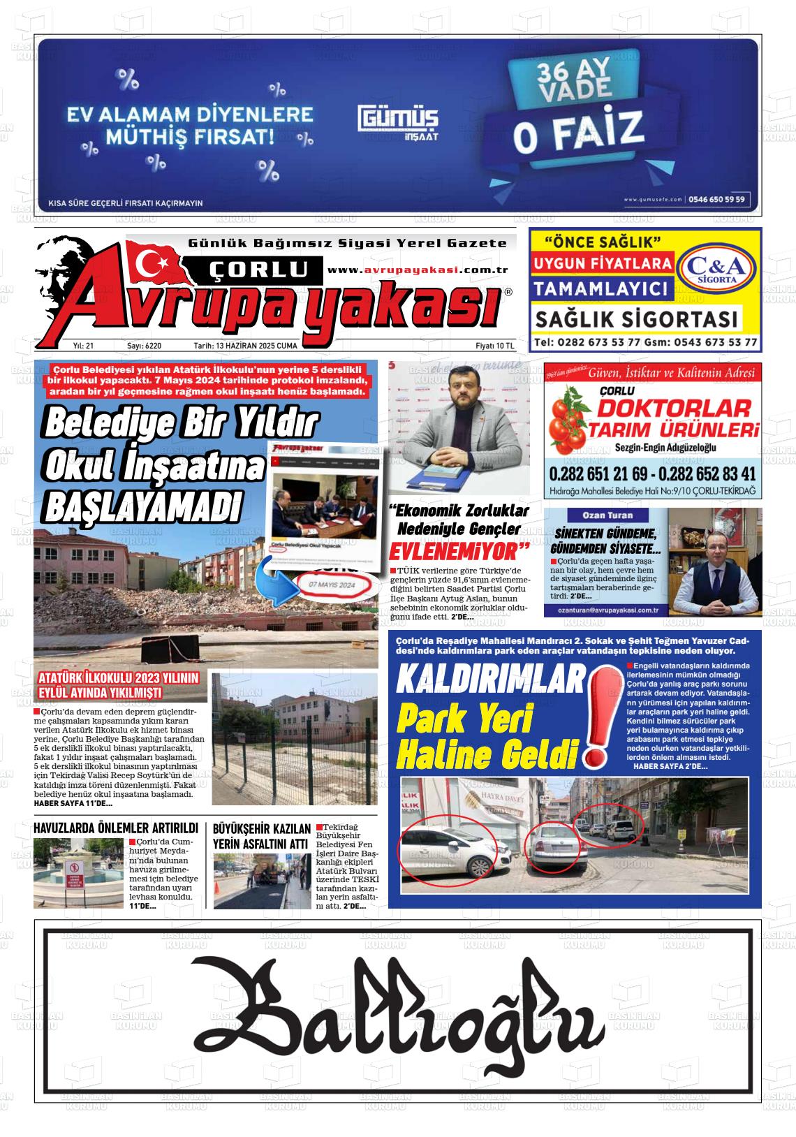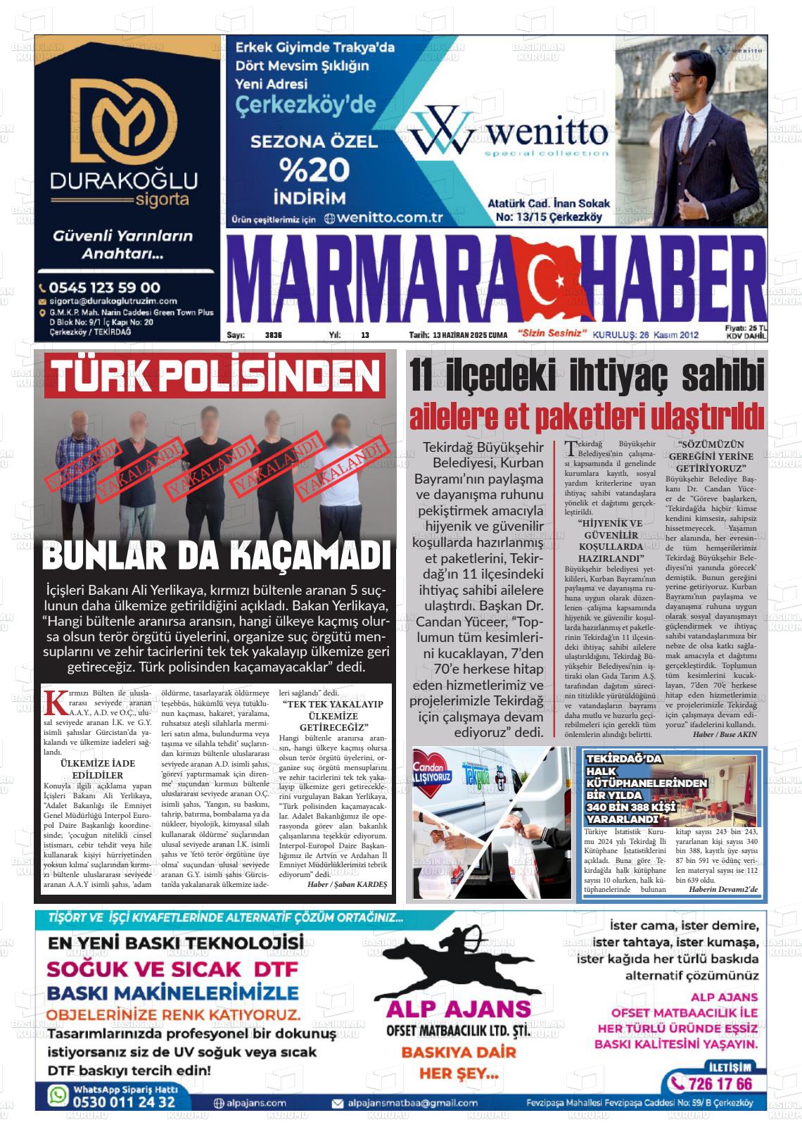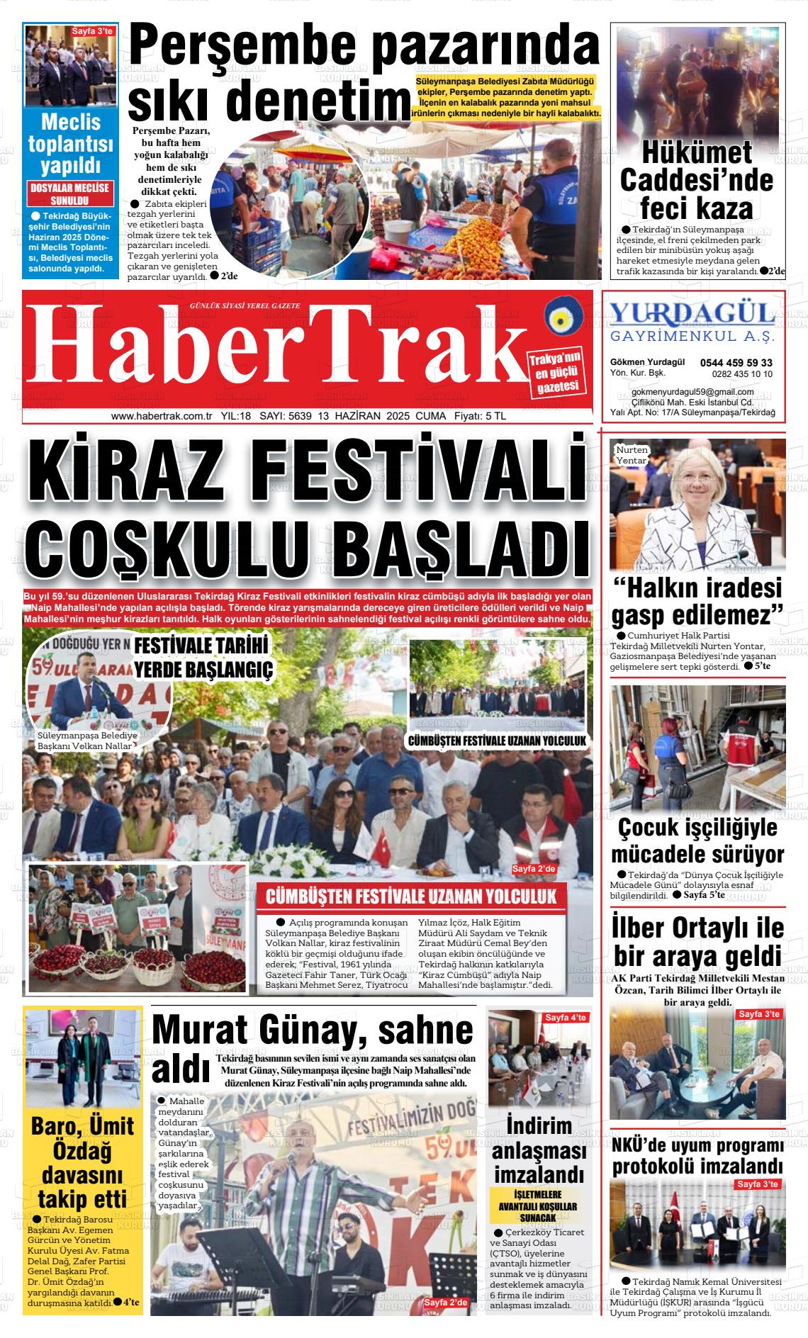 Tekİrdağ Yerel Gazeteleri 29 Kasım 2025, Cumartesi Günü Manşeti