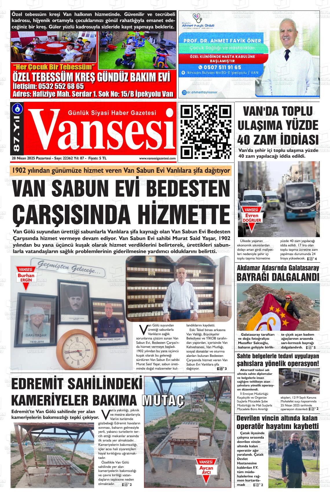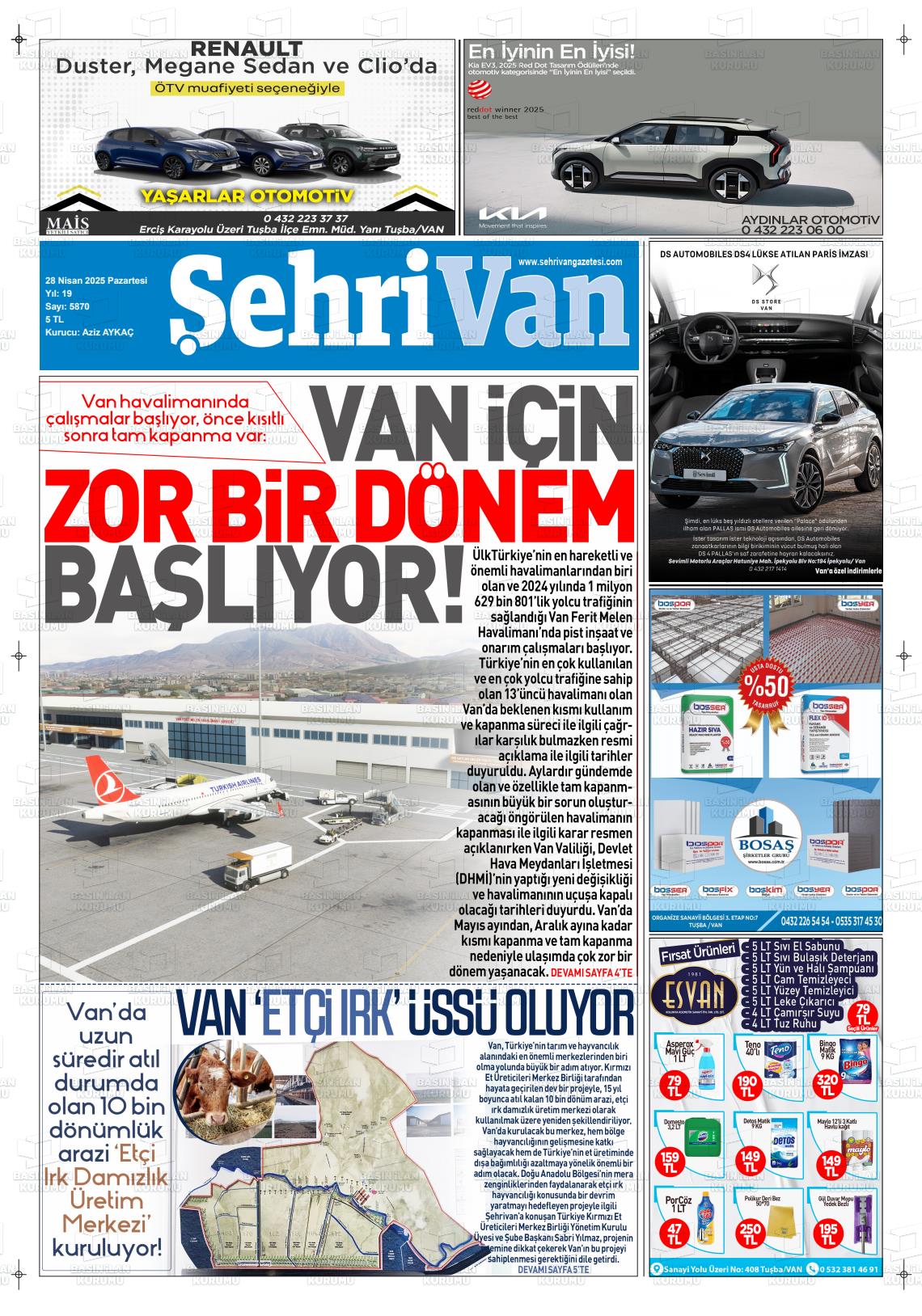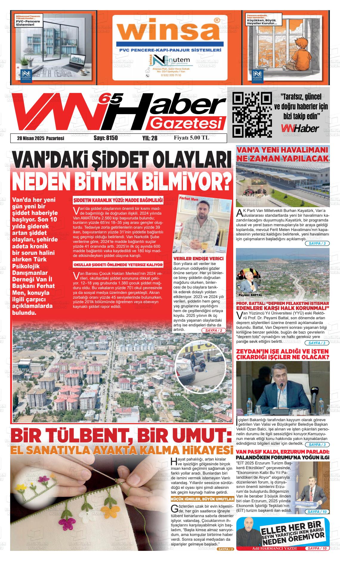 Van Yerel Gazeteleri 29 Kasım 2025, Cumartesi Günü Manşeti